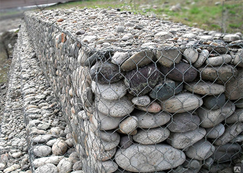 Габионы изготавливаются из сетки двойного кручения. Строение этой сетки позволяет всей конструкции не раскрутиться в случае единичного разрыва. Проволока для сетки должна быть заводского производства, чтобы не сомневаться в ее качестве.