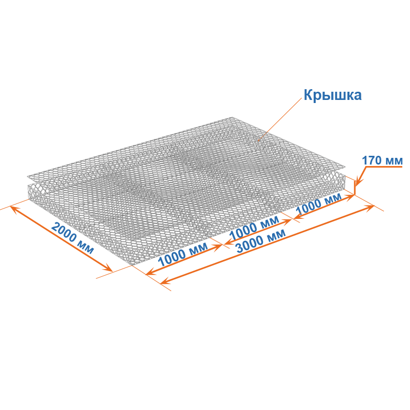Матрасы Рено 3x2x0,17 — плоские габионные секции из сетки двойного кручения с ячейкой 60х80, проволокой 2,2 мм и покрытием Цинк.