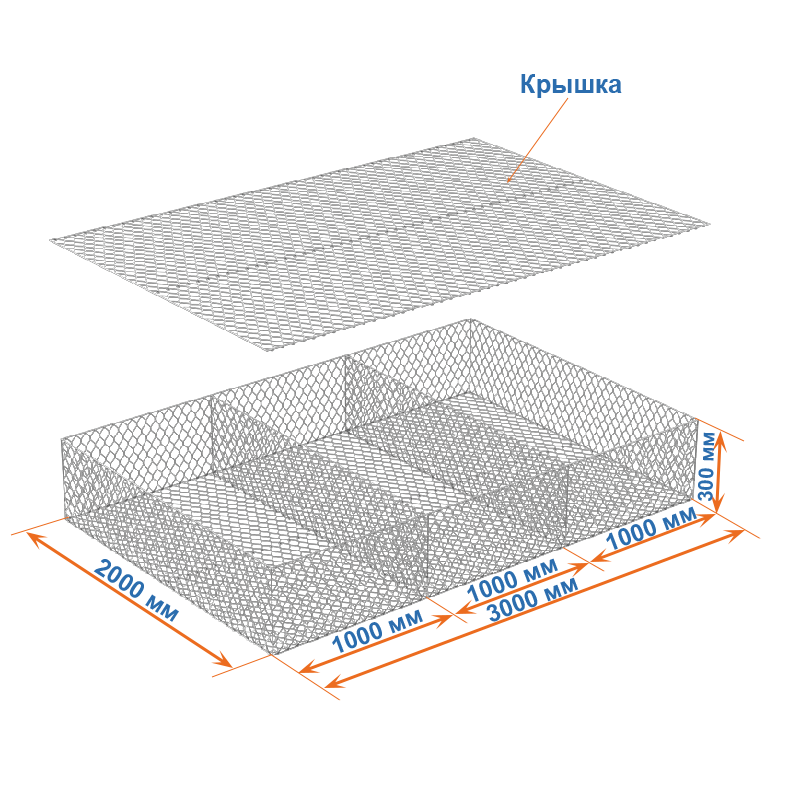 Габион матрац ГСИ-М 3х2х0,3 оцинкованный, Ø проволоки 3,0 мм, размер ячейки 8х10 см
