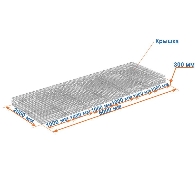 Матрасы Рено 6x2x0,3 — плоские габионные секции из сетки двойного кручения с ячейкой 60х80, проволокой 2,2 мм и покрытием Цинк.