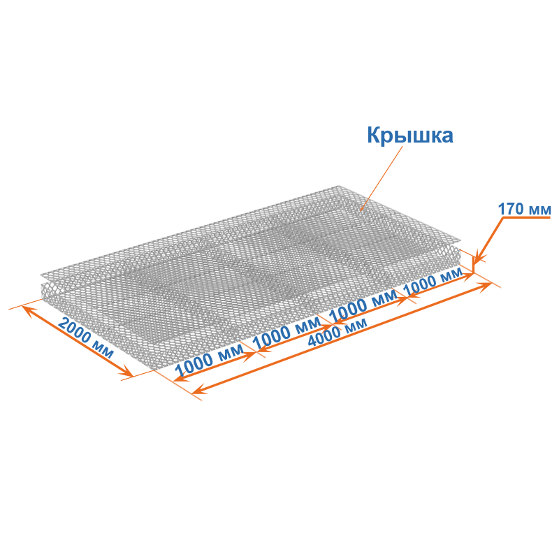 Матрасы Рено 4x2x0,17 — плоские габионные секции из сетки двойного кручения с ячейкой 80х100, проволокой 2,7 мм и покрытием Цинк.