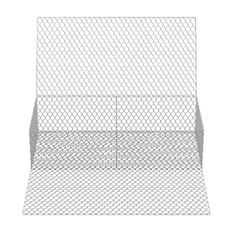 Состоит данный габион из основной части и армирующей панели, которая является продолжением основания конструкции.